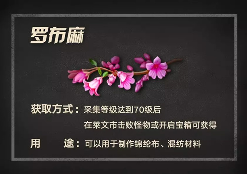 《明日之后》全新职业专属资源罗布麻应该如何获取呢?那么接下来,就跟随小编一起来看一下具体的获取攻略介绍吧!感兴趣的小伙伴一定不要错过哦!获取攻略采集等级达到70级后在莱文市击败怪物或开启宝箱可获得用途:可以用于制作锦纶布、混纺材料以上就是游戏爱好者小编为您带来的全部内容,更多资讯关注游戏爱好者。明日之后相关攻略推荐:明日之后如何制作肥肠粉-肥肠粉制作材料食谱配方分享《明日之后》喷气射手有哪些玩法?