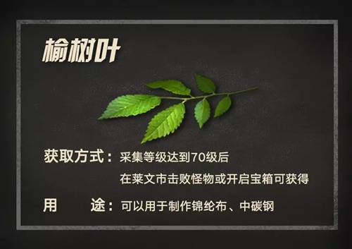 《明日之后》的榆树叶我们应该怎么获取呢?那么接下来,就跟随小编一起来看一下具体的获取攻略介绍,感兴趣的小伙伴一定不要错过哦!获取攻略采集等级达到70级后在莱文市击败怪物或开启宝箱可获得用途:可以用于制作锦纶布、中碳钢以上就是游戏爱好者小编为您带来的全部内容,更多资讯关注游戏爱好者。明日之后相关攻略推荐:明日之后怎么制作吐司风米饭片-吐司风米饭片材料食谱制作配方分享明日之后怎么制作肝腰肠粉-肝腰肠粉