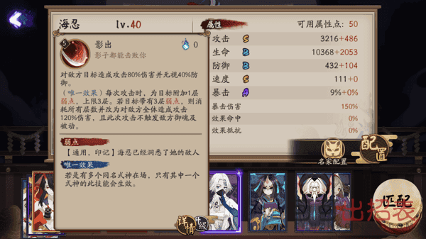 阴阳师新SR海忍技能怎么样呢?阴阳师手游中海忍是新的SR式神,很多玩家不了解新SR海忍的技能,下面小编给大家带来海忍技能介绍,感兴趣玩家快来了解一下吧! 阴阳师新SR海忍技能介绍详情 普攻:影出 对敌方目标造成攻击80%伤害并无视40%防御。 (唯一效
