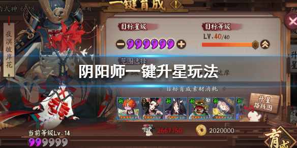在阴阳师体验服当中上线的一键升星的功能,玩家需要通过这个界面就能知道自己想要升星的式神还缺哪些材料,不要着急,接下来小编就给大家带来这方面的详细内容,感兴趣的小伙伴们可千万不要错过了哦。阴阳师一键升星怎么用一键育成介绍:暴食鬼经验、金币充足的情况下一键升星一键育成使用:1.点击单个式神2.点击升星3.打开一键育成界面4.选择目标星级以及目标等级5.选择想要使用的达摩以及御魂6.开始升星7.注意,这