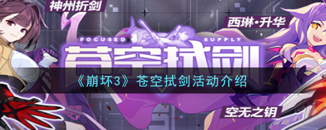 崩坏3的手游中苍空拭剑活动作为新上线的补给活动,那么具体的活动奖励有哪些呢?可能还有很多小伙伴不清楚这个问题,不过没有关系小编给大家准备了相关的详细内容来帮助大家更好的了解,下面让我们一起来看看吧。《崩坏3》苍空拭剑活动介绍======UP时间======活动期间内,所有装备均有一定概率获取;指定装备UP时间内,该装备的获取概率提升!※本次活动中,指定武器/圣痕在UP时间内,相比同星级的武器/圣痕