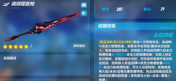 崩坏3调频噬能枪的属性怎么样,调频噬能枪作为游戏4.4版本中推出的一把新武器,可以说是很多玩家都非常期待的一个武器装备,那么这把红色的帅气长枪有着什么 样的属性呢?很多小伙伴对这方面的内容还不是很了解,为此,小编特地为大家整理了这些内容,一起往下看看吧!崩坏3调频噬能枪介绍主动技能:[能量消耗:0][冷却:25秒]发动一次突刺攻击,造成50%攻击力物理伤害。如果击中非无敌/霸体状态的敌