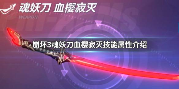 崩坏3是一款人气火爆游戏,崩坏3超限太刀武器魂妖刀血樱寂灭技能属性介绍。崩坏3超限太刀武器魂妖刀血樱寂灭是新本版本的新超限武器之一,本次游戏爱好者小编就为大家带来崩坏3超限太刀武器魂妖刀血樱寂灭技能属性介绍,感兴趣的小伙伴快来看看吧。崩坏3超限太刀武器魂妖刀血樱寂灭武器介绍6★ 攻击:393 会心:43它曾经作为神圣的灵刀被握于一名巫女手中,但崩坏的魂灵,却于那绯色的锋刃中苏醒。红月升起,血樱凋落