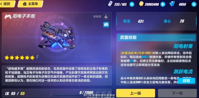 ?属性怎么样?趣小编今天带来了崩坏3阳电子手炮武器技能属性详解,感兴趣的小后半快一起来看看吧!崩坏3阳电子手炮武器技能属性详解武器介绍6★攻击418会心27“超电磁手炮”超限改造后的姿态,在原武器中加装了能够发射正电子射束的粒子加速器,当正电子与电子在空中碰撞