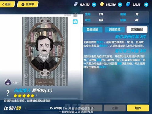 崩坏3爱伦坡圣痕属性怎么样?爱伦坡是崩坏3V3.5版本上线的一个新圣痕,小编这里带来了崩坏3爱伦坡圣痕属性详解,感兴趣的玩家们就一起来看看吧!崩坏3爱伦坡圣痕属性详解爱伦坡(上)属性:生命411 攻击113 防御44 能量14技能:物理伤害提升40%,场上的敌人超过1个时,每1个敌人将使4%物理伤害提高转化为2%暴击率提高,最多转化5次。分析:BOSS对战时非常优秀,道中清小怪也非常轻松,高暴击带