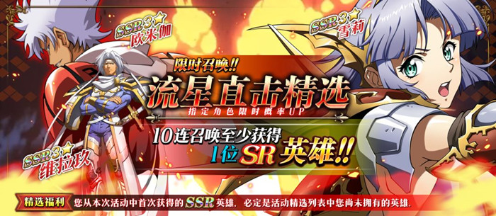梦幻模拟战流星直击活动内容有哪些?想必很多的小伙伴们都不是很清楚,那么接下来,就跟随游戏爱好者小编一起来看一下《梦幻模拟战流星直击活动内容及福利介绍》吧!感兴趣的小伙伴一定不要错过哦!梦幻模拟战流星直击活动内容及福利介绍活动时间2月20日10:00-3月4日23:59限时召唤「流星直击精选」中SSR级英雄维拉玖、雪莉、欧米伽出现概率提升!活动奖励你从本次活动中首次抽取到的SSR英雄,必定是活动精选