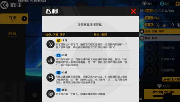 在手游中叶飞技能怎么样呢?在手游中叶飞可以说是不少小伙伴们都想获得的角色了!那么想了解的小伙伴们接下来就让我们一起来看一下吧!飞将叶飞技能玩法叶飞召膜出八把飞刀,岳把飞刀能对正前方一定范围内的随机一个敌人造成伤害,技能持维期间叶 飞可以肠动并进行开火攻(小招)
