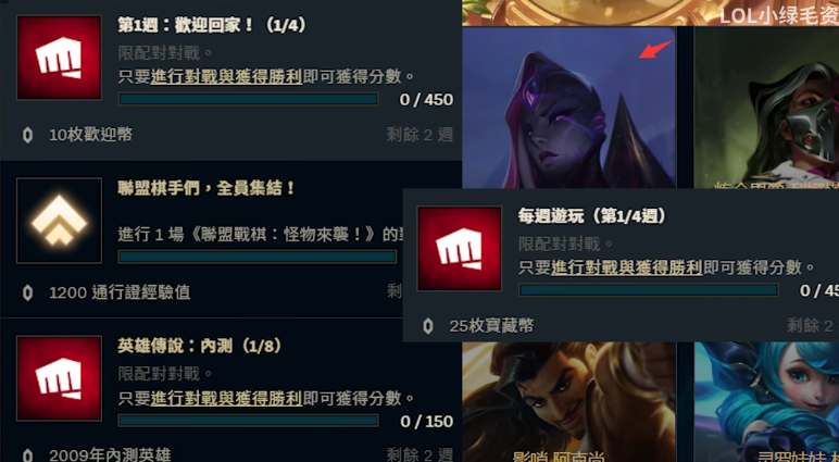 英雄联盟台服已经上线,因为全英雄的活动,很多小伙伴都注册了,那么进入游戏后怎么解锁全英雄呢?接下来就跟游戏爱好者小编一起来看看吧,有需要的小伙伴不要错过!英雄联盟台服全英雄获得攻略1、玩家注册并登录台服之后账号达到5级,即可通过完成特定的任务来获得2009年内测英雄,任务列表如下图所示:2、这个任务是每日刷新和解锁的,只要在台湾时间2023年2月21日下午3点59分前完成就可以;3、完成全部任务后