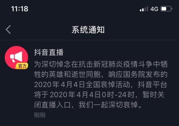2020年注定是不平凡的一年,也是载入历史的一年,为了抗击新冠肺炎,太多前线人员为此献出了自己的生命。4月4日当天我们将对抗击新冠肺炎疫情斗争牺牲烈士和逝世同胞的深切哀悼,在此期间,全国和驻外使领馆下半旗志哀,全国停止公共娱乐活动。抖音也宣布将在4月4日当天关闭所有直播以示哀悼!不过,4月5日0点之后所有游戏都将重新开服,所以白天同样是可以养精蓄锐,到了5号凌晨的时候再玩游戏也是可以的。届时,为表