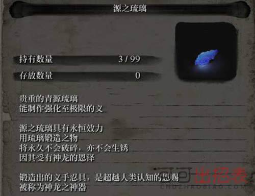 只狼影逝二度游戏爱好者中源之琉璃具有永恒效力,使用琉璃锻造之物将永久不会破碎、亦不会生锈,那么在游戏爱好者中怎么才能获得源之琉璃呢?下面和小编一起看看获取方法吧! 只狼影逝二度源之琉璃获得方法分享 贵重的清源liul琉璃能制作强化至极限的义 源之琉璃杀七