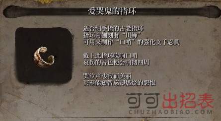 只狼影逝二度游戏爱好者中爱哭鬼的戒指可以用来制作口哨的强化义忍具,很多玩家不知道怎么获得爱哭鬼的戒指,下面不知道的玩家和小编一起看看获取方法吧! 只狼影逝二度爱哭鬼的戒指获取方法介绍 苇名之底,从毒沼狮子猿巢穴,杀完黑白狮子猿不久之后,出现一个七面武士,干