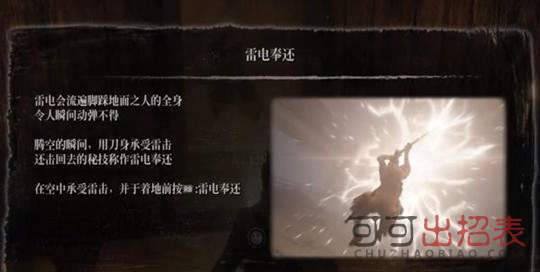 只狼影逝二度游戏爱好者中雷电奉还是腾空的瞬间用刀身承受雷击,在还击回去的秘籍,很多玩家不知道雷电奉还怎么使用,下面不清楚的玩家和小编一起看看使用方法吧! 只狼影逝二度雷电奉还怎么用 雷电伤害是在你落地的时候结算,你在他放雷的时候跳起来接到雷,落地之前按攻击