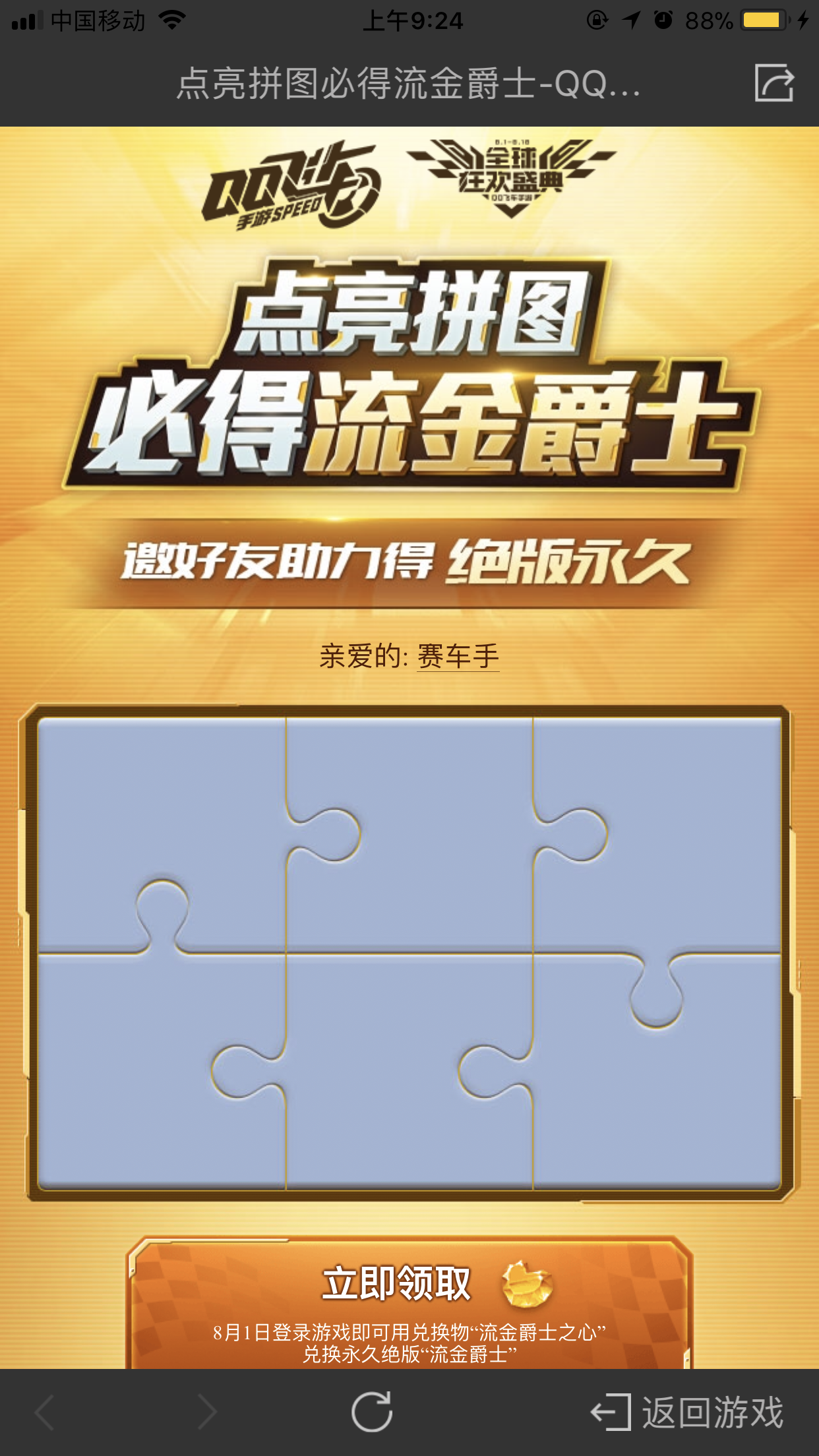中的赛车有很多辆了呢,然而D车一直只有一辆新手赛车,这次亚洲杯的开赛,QQ飞车也带来了福利,第二辆D车流金爵士问世,那么怎么获取永久的流金爵士呢?快和小编来看看吧。活动时间:2019年7月18日-8月1日;活动期间,用户本人可点亮1块拼图,分享好友后,每位好友
