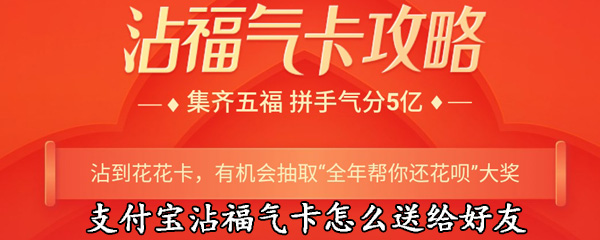 支付宝沾福气卡怎么送给好友?支付宝的沾福气卡是最近才新出来的集福气卡片,好运连连哦,毕竟可以复制别人的卡!那么支付宝沾福气卡怎么送给好友呢?那么下面我们快和小编一起看看吧! 支付宝沾福气卡怎么送给好友 小编推荐:支付宝沾福气卡怎么用 一、必