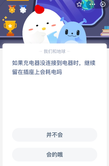 用户们在使用充电器完成充电后总会忘记拔下来就在插座上。那么充电器继续留在插座上还会耗电吗?相信很多小伙伴都不知道答案,接下来就让小编为你解答一下,希望能够对你带来帮助!2022年蚂蚁庄园7月18日庄园小课堂答案今天的问题是:如果充电器没连接到电器时,继续留在插座上会耗电吗?答案是:会的哦答案解析:一般来说,在插座上不拔且没连接到电器的充电器,都是处于“空载”状态。由于空载时同样有电流通过,充电器就