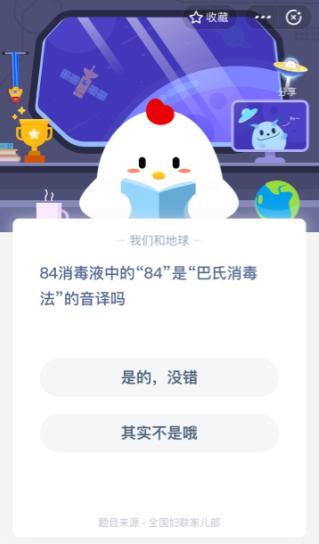 支付宝蚂蚁庄园中用户通过线上支付等任务来获得养小鸡的饲料,很多小伙伴会做蚂蚁庄园的答题活动来获得饲料,今天的题目是84消毒液中的84是巴氏消毒法的音译吗,游戏爱好者小编为大家带来蚂蚁庄园答题攻略。84消毒液中的84是巴氏消毒法的音译吗答案:其实不是哦蚂蚁庄园怎么玩继蚂蚁森林种树捐树后,支付宝又在APP客户端中推出了蚂蚁庄园爱心游戏,用户可以领养喂小鸡。笔笔支付都有爱心,支付宝到店付款,每天可以获赠