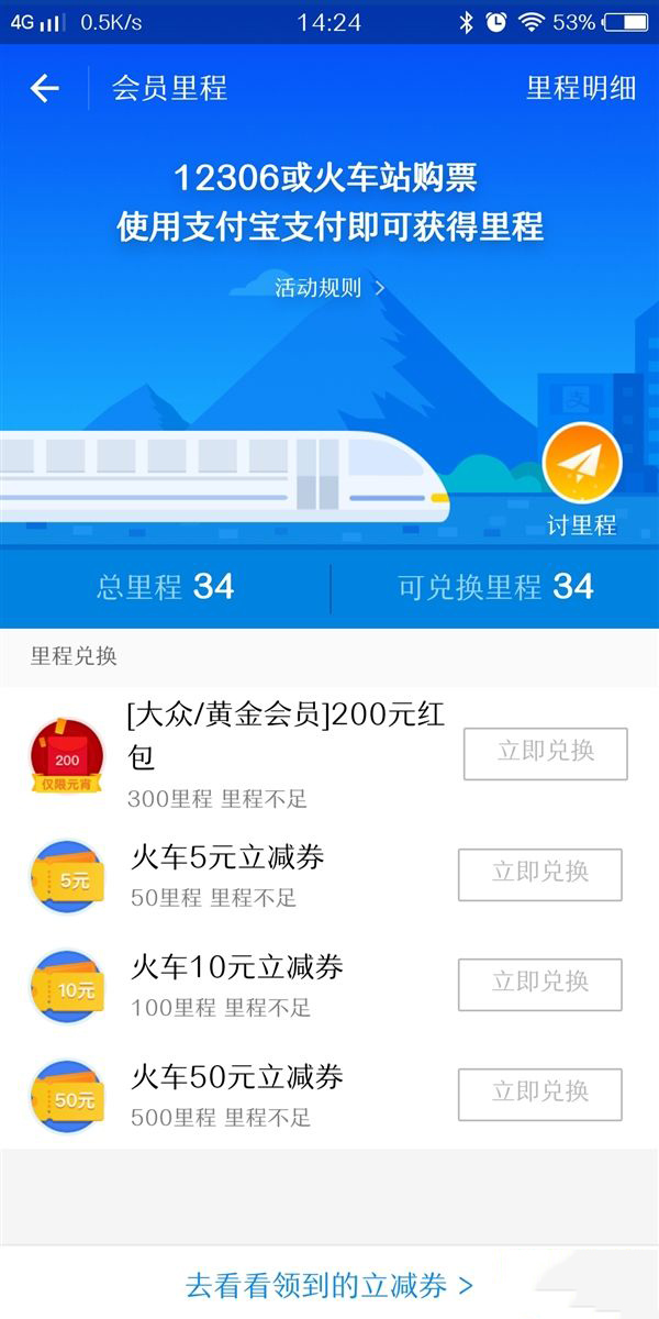 我们在支付宝中积累铁路里程,可以兑换红包或者立减券,但是许多朋友还不知道如何获得支付宝里程,那么下面就让我们一起来看看获得支付宝里程的获取方法吧。 在铁路官方渠道(12306官网、客户端、火车站窗口、自助售票机)用支付宝购买火车票,不但能累积铁路会员积分,还