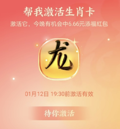 支付宝集五福活动在1月10正式开启,该活动还新增了生肖卡的玩法,相信很多小伙伴还太清楚生肖卡的获取方法及功能。下面就让小编为你详细介绍一下,感兴趣的朋友们赶紧来看一下吧!支付宝集五福生肖卡怎么获得?1.集五福的过程中会随机发放,各个集福玩法都有机会获得;①画年画得生肖卡②扫福得生肖卡③找能量得生肖卡④摇一摇得生肖卡⑤看直播送鼓励得生肖卡⑥运动得生肖卡2.好友邀请你激活生肖卡,你也可以得到一张生肖卡