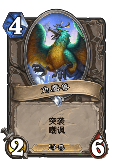 炉石传说是一款人气火爆游戏,那么炉石传说?今天小编就给大家带来炉石传说,感兴趣的小伙伴快来看看吧。 炉石传说巨龙降临中立普通随从角鹰兽效果介绍。剑龙的加强版,比剑龙多一个突袭的它,只要你能忍住不动,就不算完爆,那么这张卡具体是什么效果呢?一起来看看吧。炉石传说