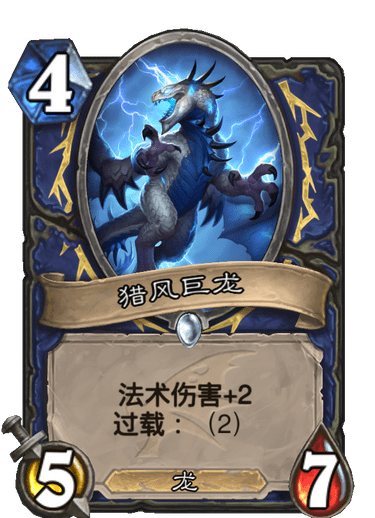 炉石传说猎风巨龙是萨满的过载随从,还记得曾经的477屋投火者吗,这张同样很强,那么今天小编就给大家带来炉石传说萨满随从猎风巨龙费用效果介绍,感兴趣的小伙伴快来看看吧。萨满普通随从猎风巨龙4费 5/7法术伤害+2,过载:(2)过载两费,可以看做这张卡,657的身材,也是不亏的,而且它还有法强加二,这就非常超模了。而且不同于六费,它可以四费就下场,占据优势,过载有时候对于过载萨反而能起到