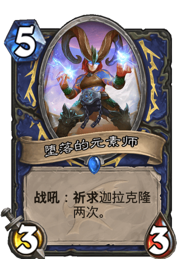 炉石传说巨龙降临萨满稀有随从堕落的元素师效果介绍。带上这张卡就可以迅速完成对迦拉克隆的祈求,可以说是萨满祈求卡组的核心,那么这张卡具体是什么效果呢?一起来看看吧。巨龙降临萨满稀有随从堕落的元素师5费 3/3战吼:祈求迦拉克隆两次。不要仅看牌面是亏身材的,由于祈