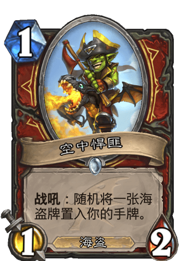 炉石传说是一款人气火爆游戏,空中悍匪不愧是悍匪,骑着一条龙飞来了,注意他是个海盗,海盗战天下第一,那么炉石传说?今天小编就给大家带来炉石传说战士随从空中悍匪战吼使用效果一览,感兴趣的小伙伴快来看看吧。战士普通随从空中悍匪1费 1/2战吼:随机将一张海盗牌置入你的手牌。海盗海盗战最欠缺的低费海盗,随着恩佐斯的副官和帕奇斯的退环境,在这一刻被补齐了。而且空中悍匪战吼还能再补充一个海盗,增