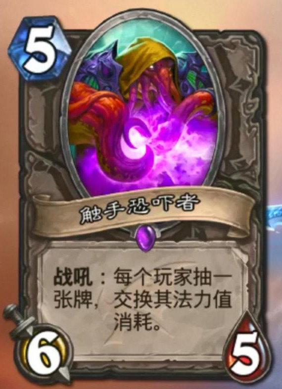 炉石传说触手恐吓者卡牌有哪些效果?这张卡也可以帮双方同时过牌,但是它比抽牌鱼多了一种费用改用的效果,相信还有许多玩家不了解,那么接下来游戏爱好者小编就带大家来看一下触手恐吓者效果详情,感兴趣的小伙伴一起来看看吧。巨龙降临中立史诗随从触手恐吓者5费 6/5战吼: