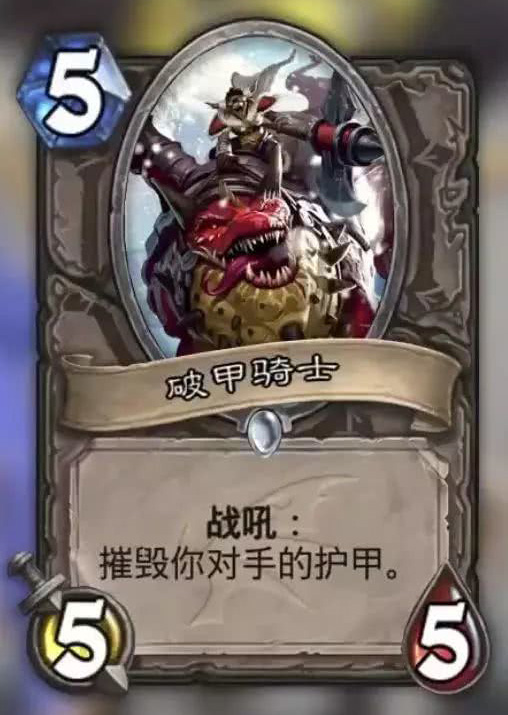 炉石传说巨龙降临中立普通随从破甲骑士效果介绍。护甲后面不再安全了,战士的技能更弱了,想必你们已经猜到是张什么卡了,那么这张卡具体是什么效果呢?一起来看看吧。巨龙降临中立普通随从破甲骑士5费 5/5战吼:摧毁你对手的护甲。战士玩家看到这张卡,当场眼泪就下来了,我