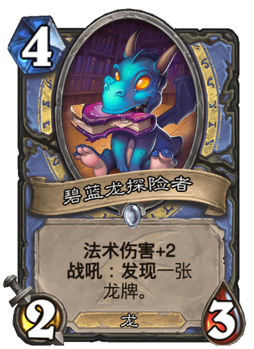 炉石传说巨龙降临新卡碧蓝龙探险者怎么样!你喜欢这款游戏嘛?喜欢的话就跟着游戏爱好者小编一起走进游戏的世界吧!带你欣赏游戏的魅力!炉石传说巨龙降临新卡碧蓝龙探险者怎么样法师普通随从,碧蓝龙探险者4费2/3,龙,法术伤害+2,战吼:发现一张龙牌。以上就是游戏爱好者