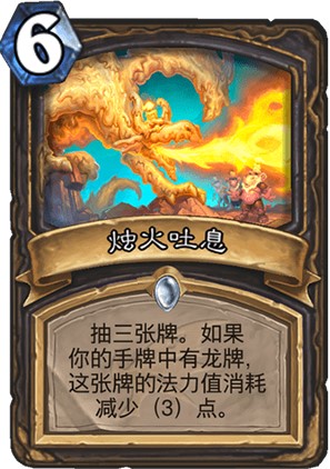 炉石传说是一款人气火爆的卡牌策略游戏,最近炉石传说巨龙降临扩展包即将发布,新卡发布是玩家们关心的重点,今天就给大家带来炉石传说巨龙降临新卡烛火吐息属性一览?跟小编一起来看看吧。 烛火吐息属性介绍: 费用:6费 品质:普通 职业:潜行者 所属卡牌包:巨龙降临 卡牌效果:抽三张牌,如果你的手牌中有龙牌,这张牌的法力值消耗减少3点。强度分析(满分为5分)5分,3费抽3他太超模了,超