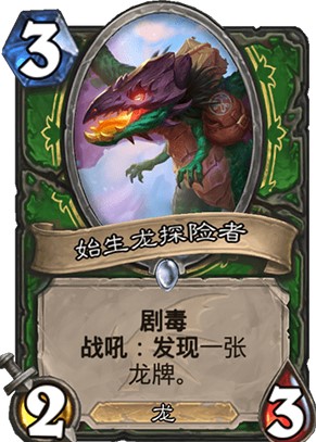 炉石传说是一款人气火爆的卡牌策略游戏,最近炉石传说巨龙降临扩展包即将发布,新卡发布是玩家们关心的重点,今天就给大家带来炉石传说巨龙降临新卡始生龙探险者属性一览?跟小编一起来看看吧。 始生龙探险者属性介绍: 费用:3费 攻击力:2 血量:3 品质:普通 职业:猎人 所属卡牌包:巨龙降临 卡牌效果:剧毒,战吼:发现一张龙牌。强度分析简直是剧毒眼镜蛇还附赠一个战吼发现龙,龙猎必带,感