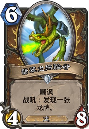炉石传说是一款人气火爆的卡牌策略游戏,最近炉石传说巨龙降临扩展包即将发布,新卡发布是玩家们关心的重点,今天就给大家带来炉石传说巨龙降临新卡翡翠龙探险者属性一览?跟小编一起来看看吧。 翡翠龙探险者属性介绍: 费用:6费 攻击力:4 血量:8 品质:普通 职业:德鲁伊 所属卡牌包:巨龙降临 卡牌效果:嘲讽,战吼:发现一张龙牌。以上就是小编为大家整理的全部内容,更多精彩资讯尽在游戏爱