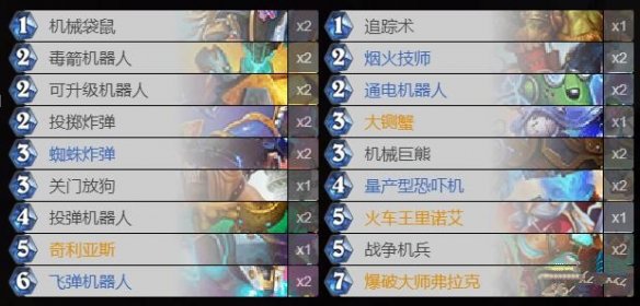 机械猎本来是几个版本之前的热门阵容,很多人都比较熟悉,但是在20月24日的亚服比赛中登场了很多机械猎,说明当前环境中这个牌组还是很有一战之力的。一起来看看吧。炉石传说机械猎AAECAR8GrwSXCNsJ4fUCoIADn7cDDOD1AuL1Au/1Arn4