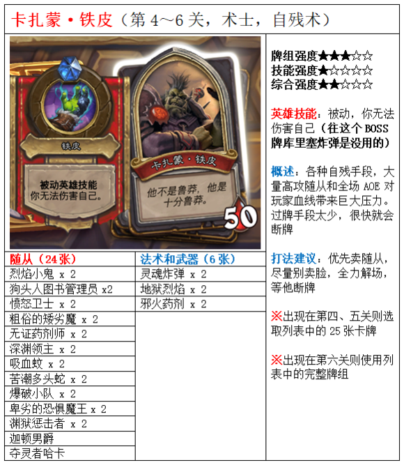 中的卡扎蒙铁皮,这张卡牌在小编搜集的达拉然大劫案的全部75名BOSS完整卡组详解当中,究竟怎么样?有哪些特点?有哪些打法建议?感兴趣就来看看吧。顺便说一句,窃魂者阿扎莉娜是真的难选到,感觉比酒馆模式里遇见阿莱克斯塔萨(红龙)还要难闲谈1:旋转木马可能是“智商”
