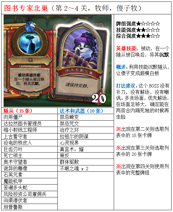 中的图书专家北巢,这张卡牌在小编搜集的达拉然大劫案的全部75名BOSS完整卡组详解当中,究竟怎么样?有哪些特点?有哪些打法建议?感兴趣就来看看吧。顺便说一句,窃魂者阿扎莉娜是真的难选到,感觉比酒馆模式里遇见阿莱克斯塔萨(红龙)还要难闲谈1:旋转木马可能是“智商