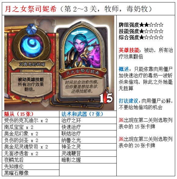 中的月之女祭司妮希,这张卡牌在小编搜集的达拉然大劫案的全部75名BOSS完整卡组详解当中,究竟怎么样?有哪些特点?有哪些打法建议?感兴趣就来看看吧。顺便说一句,窃魂者阿扎莉娜是真的难选到,感觉比酒馆模式里遇见阿莱克斯塔萨(红龙)还要难闲谈1:旋转木马可能是“智