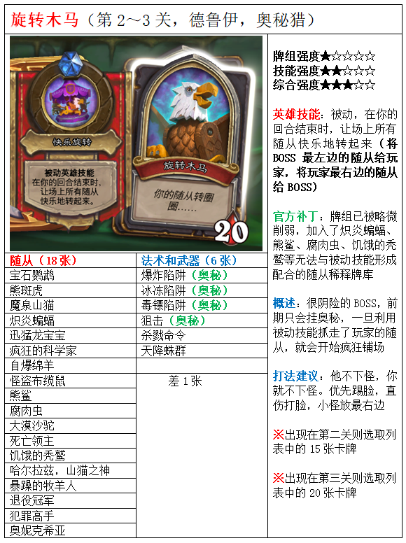中的旋转木马,这张卡牌在小编搜集的达拉然大劫案的全部75名BOSS完整卡组详解当中,究竟怎么样?有哪些特点?有哪些打法建议?感兴趣就来看看吧。顺便说一句,窃魂者阿扎莉娜是真的难选到,感觉比酒馆模式里遇见阿莱克斯塔萨(红龙)还要难闲谈1:旋转木马可能是“智商”最