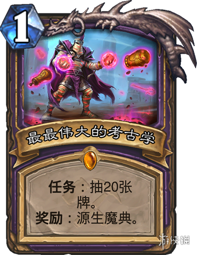 炉石传说术士新任务卡,最最伟大的考古学效果介绍。在奥丹姆的奇兵扩展中,随着任务牌的回归,有三张新任务牌加入,这张术士的考古学就是其中之一,那么他有什么效果呢。一起来看看吧。最最伟大的考古学效果介绍最最伟大的考古学费用:1效果:任务:抽20张牌。奖励:源生魔典源