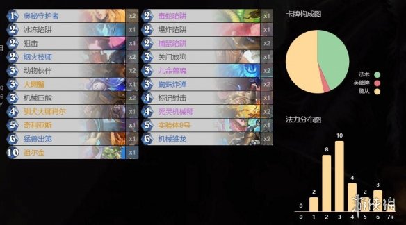 炉石传说职业选手卡组推荐,混合猎卡组搭配分享。这套卡组是美服玩家NoHandsGame的一套混合猎,把猎人的奥秘体系和机械亡语体系融合在了一起,接下来就让小编为大家分享一下这套混合猎卡组吧。混合猎卡组推荐美服玩家NoHandsGamer的一套混合猎,他使用这套