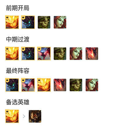 现在云顶之弈森林和德鲁伊这两个羁绊前期可以说是最好的打工牌了,但到了后期可以说是几乎没有这个阵容了吧,那下面就跟着小编一起来看看这个搭配上钢铁和刺客的变形森林德鲁伊阵容吧!最终成员组成大树、梦魇、皎月、挖掘机、翠神、妖姬前期森林牌胡的话可以考虑优先玩这个,开局