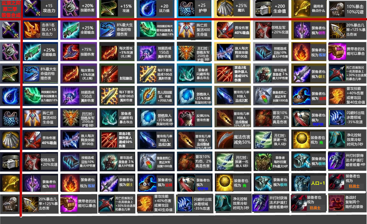 云顶之弈新赛季装备合成有很大的变化,我们特地准备了一个最新的合成图,这样玩家就可以很好的了解各种装备合成之后的属性和特点了。那么云顶之弈新赛季装备改动了什么?希望下面这篇云顶之弈新赛季装备改动属性表一览能帮到大家。云顶之弈S2装备合成图云顶之弈相关攻略推荐:云顶之弈跳跳忍刺套路如何运营?跳跳忍刺套路运营方法介绍云顶之弈纯种六斗士虚空斗枪套路如何运营?纯种六斗士虚空斗枪套路运营方法介绍云顶之弈阿卡丽